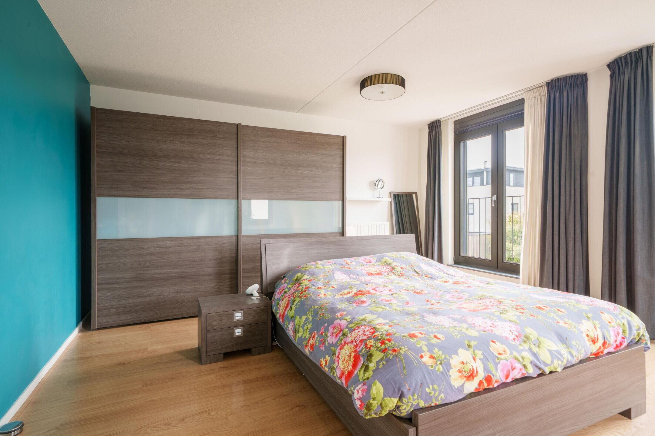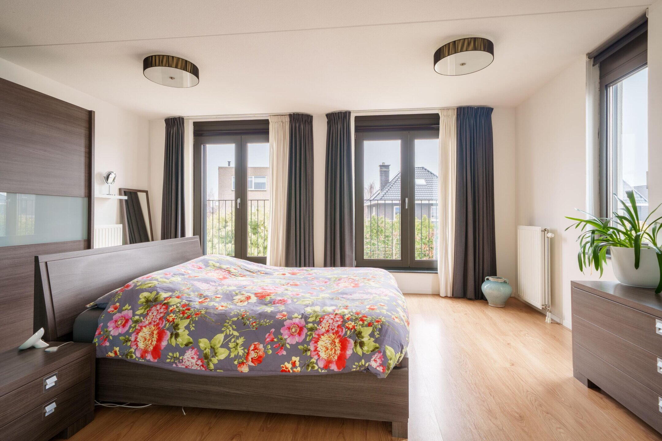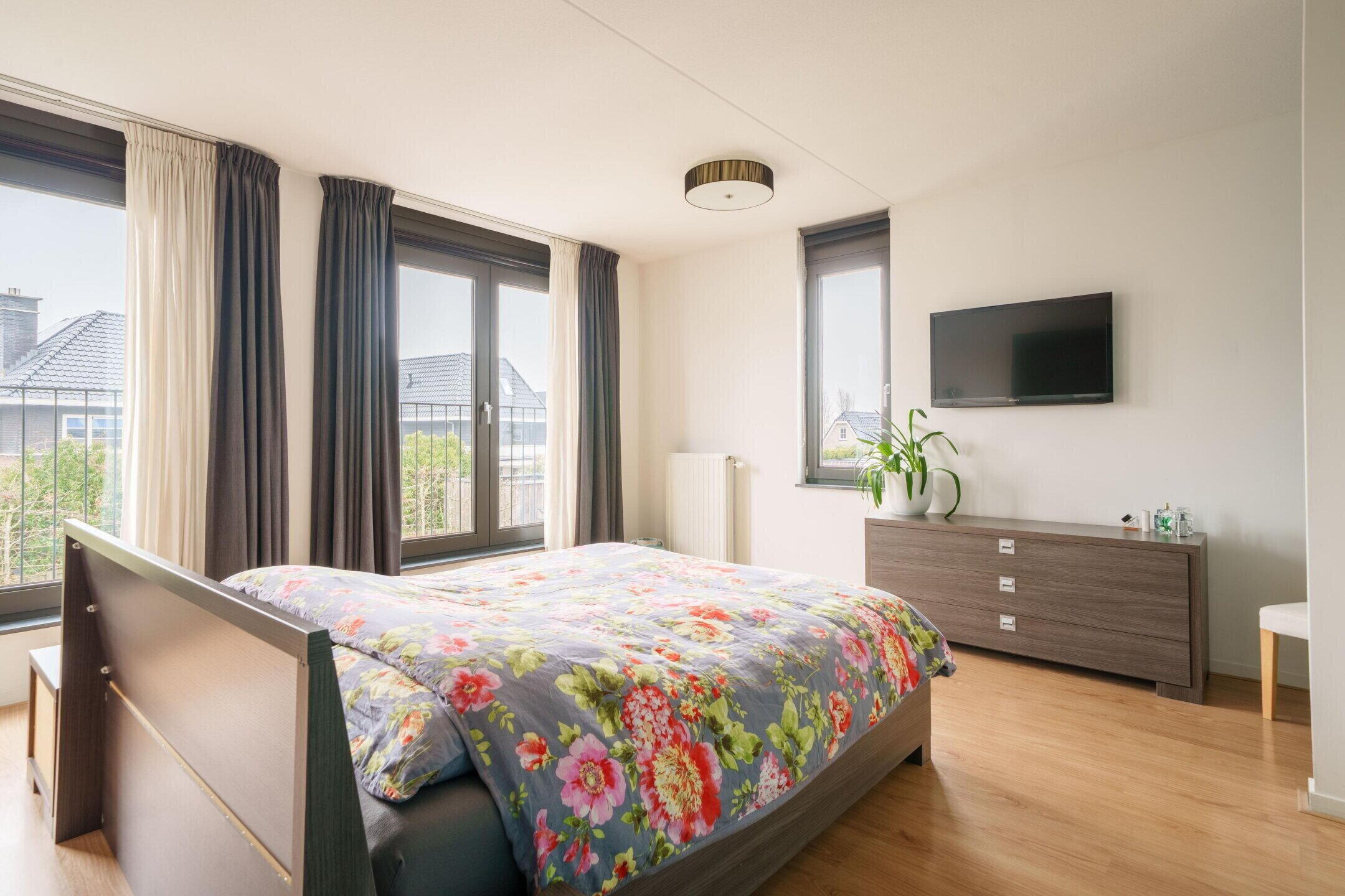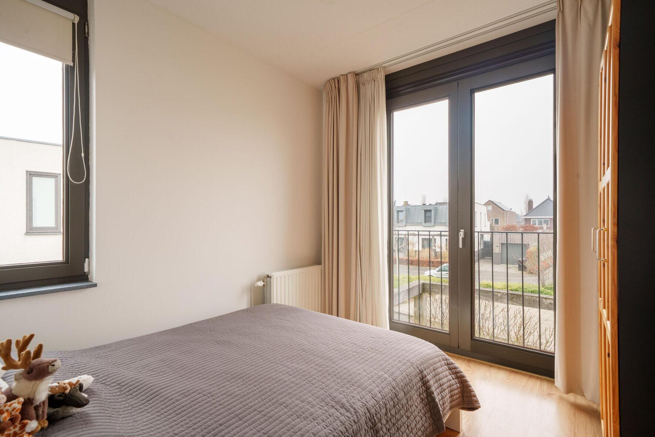 • Masterbedroom over de volle breedte van de woning met 2 Franse balkons